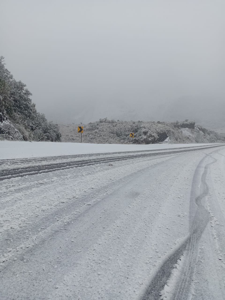 ❄️ #Atención | Desde la madrugada se registra caída de nieve en el sector de #Papallacta, a la altura de La Virgen.