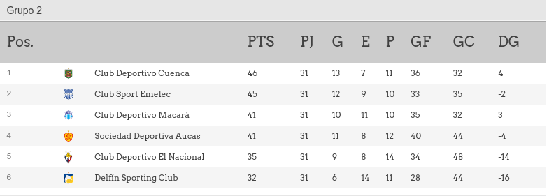 En la primera fecha, Emelec se impuso 3-1 sobre Deportivo Cuenca, lo que le permitió posicionarse segundo en la tabla de posiciones.