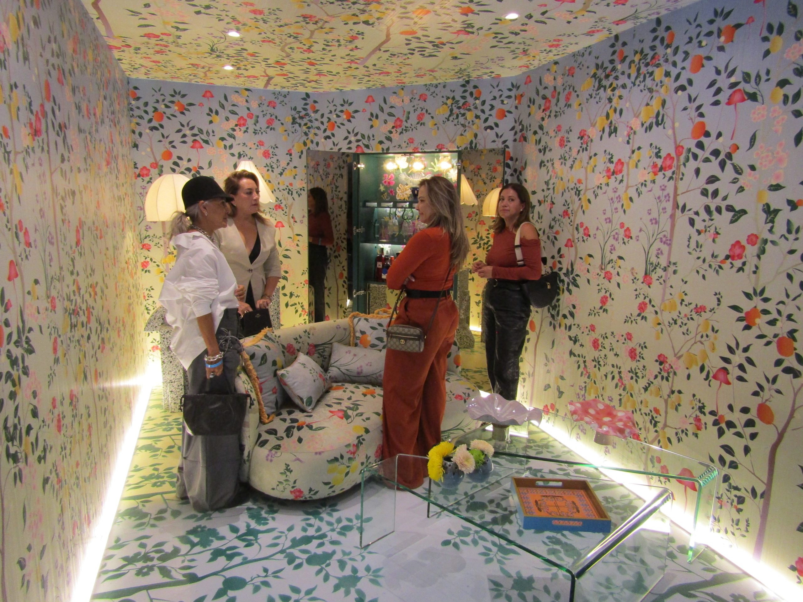 El resultado es un ambiente tipo “speakeasy”, con espejos, mobiliario protagonista y una instalación central que convierte al producto en parte del recorrido visual.