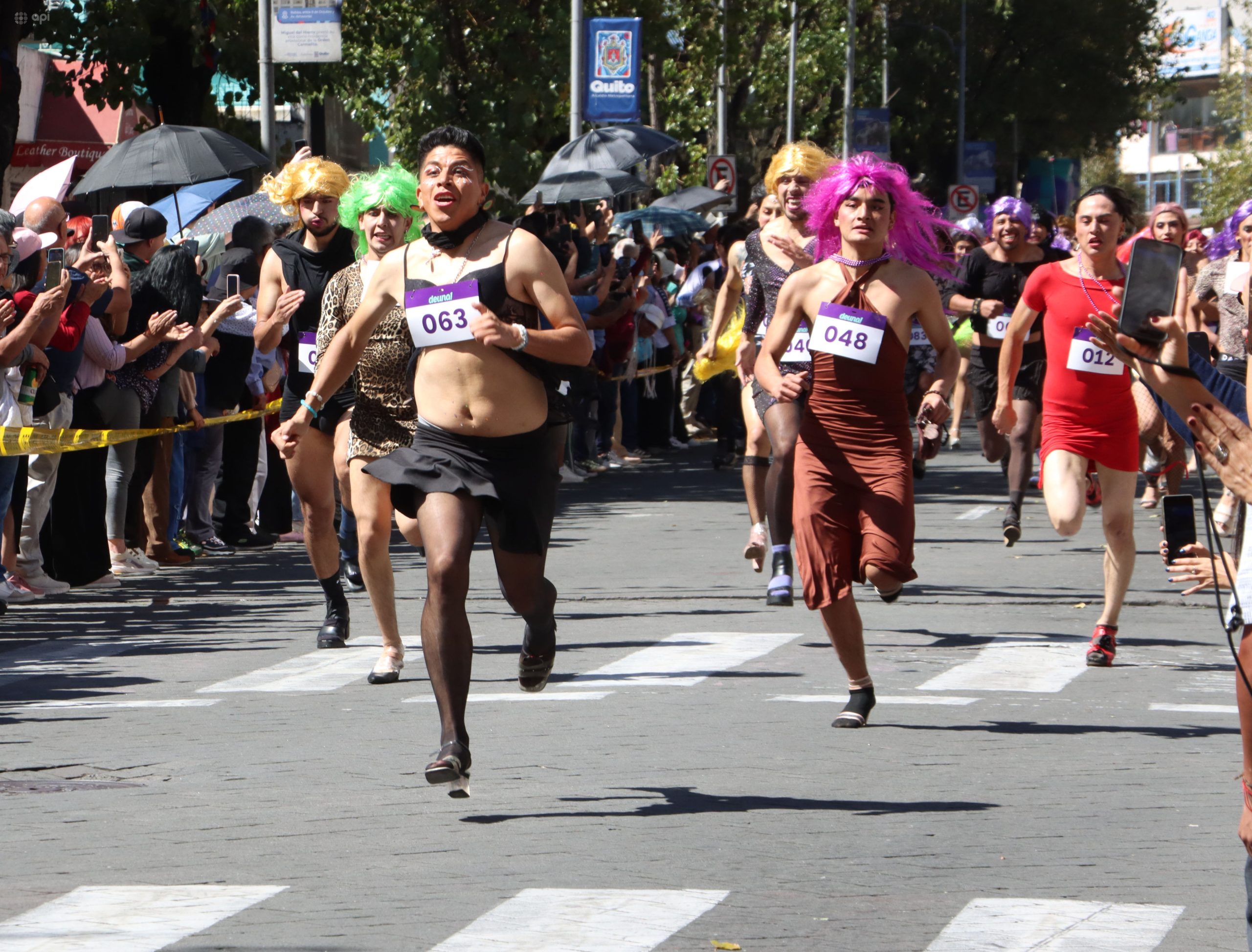 Cientos de personas acudieron a a ver la primera carrera de viudas de fin de año, en la avenida Amazonas, centro de la capital.