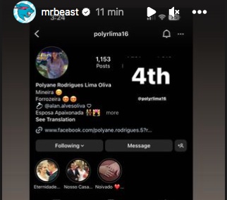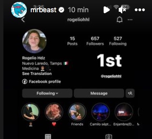 Actualmente la publicación original fue eliminada de su perfil por una penalización de Instagram, pero en sus historias se puede ver a las personas que escogió para darles el dinero.
