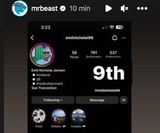 Finalmente, tal como prometió, al cabo de 72 horas, este 10 de mayo de 2023, anunció a los ganadores, pero la cantidad será repartida entre diez personas. Actualmente la publicación original fue eliminada de su perfil por una penalización de Instagram, pero en sus historias se puede ver a las personas que escogió para darles el dinero. Se trata de un youtuber reconocido por sus videos en los que regala dinero a desconocidos. Tiene apenas 25 años pero ya se lo tacha de empresario en la Internet.