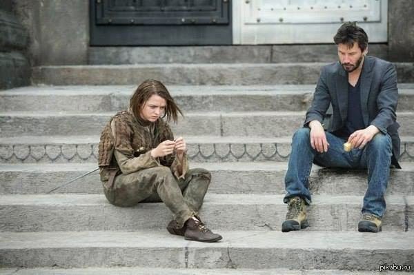 Uno de los memes creados bajo la etiqueta ‘Sad Keanu’ (Keanu está triste). Usuarios de redes usan esta foto del actor en ambientes de tristeza. Esta vez lo pusieron junto a Arya Stark, de la serie Juego de Tronos. Foto: Internet