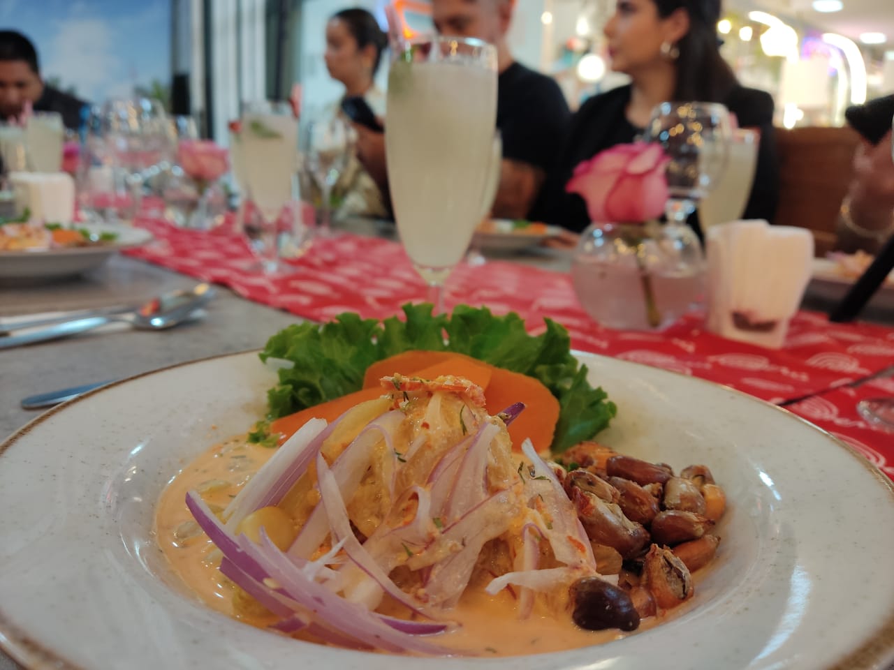 Por supuesto después llegó el Pisco Sour, que tiene un toque de limón, crema de clara de huevo y hielo, cuyo dulzor va perfecto con la famosa causa limeña, un suave y exquisito puré de papá que encierra una mezcla de pollo y aguacate.