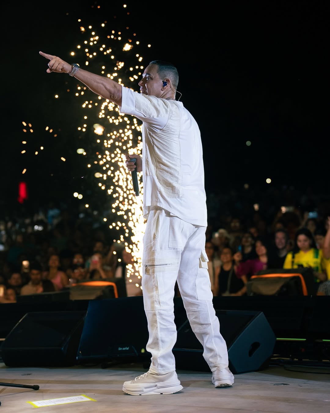 El intérprete de éxitos como Suavemente y Luna llena conquistó al público con su carisma y su característica voz, y logró que miles de personas canten cada una de sus canciones. Su show combinó efectos visuales, coreografías y un repertorio de clásicos del merengue, que transformaron la concha acústica en una pista de baile.