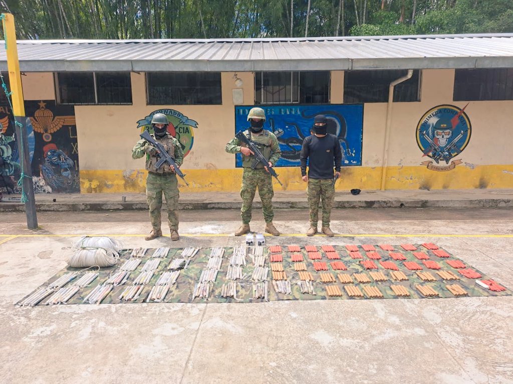 La fuerza terrestre decomisó material detonante y equipos para extracción ilícita en Tulcán, con un perjuicio de $ 136.000.