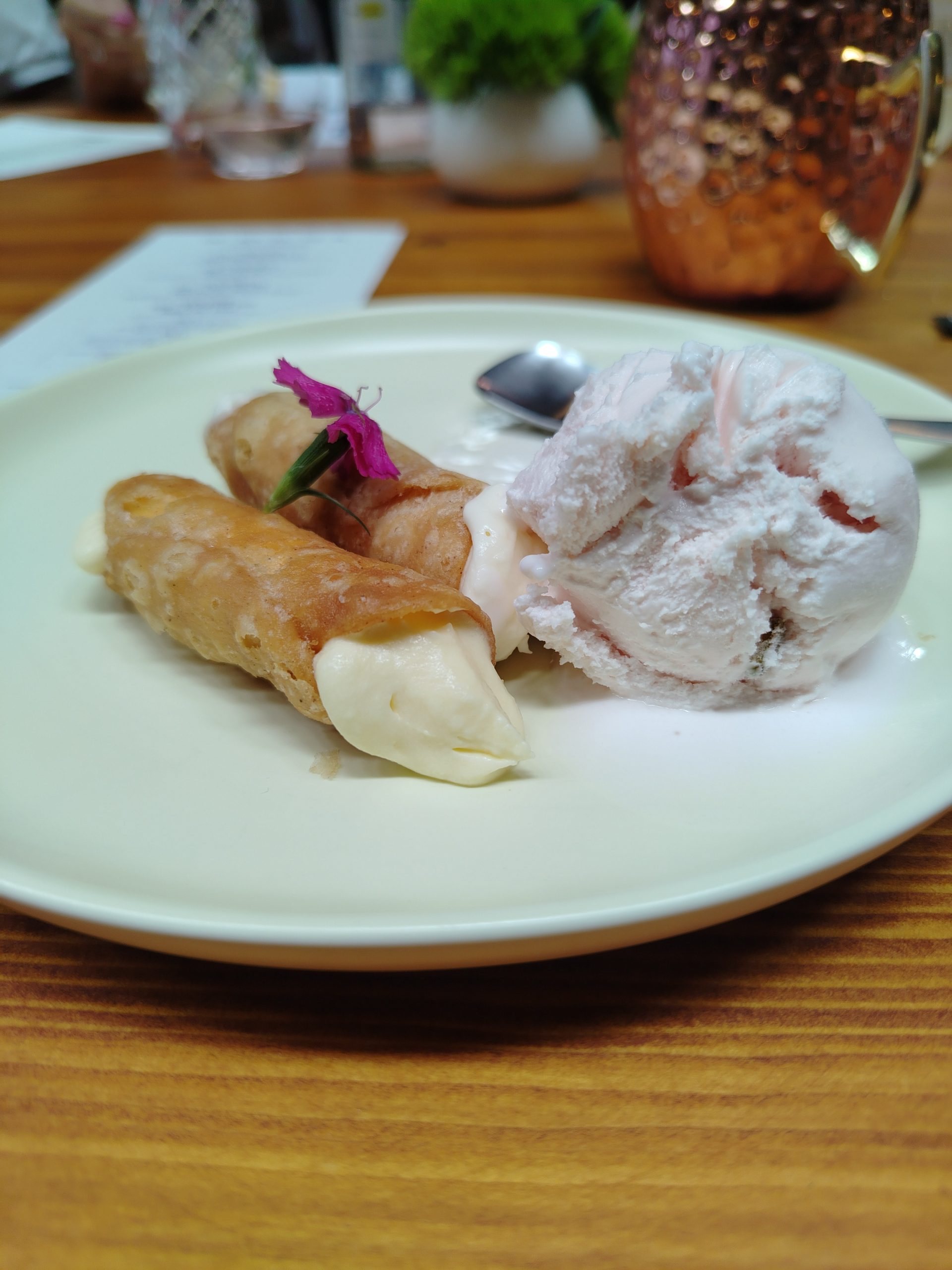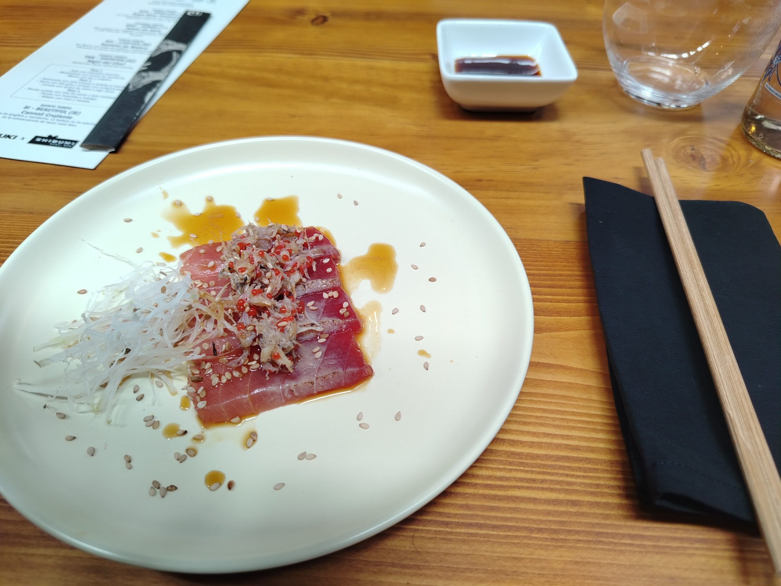 La típica sopa miso japonesa fue la entrada, la cual con su calor se sintió como un abrazo al estómago. Le siguió un tataki de atún con cangrejo; sashimi y una serie de nigiris (piezas de arroz con pescado), cada uno con un sabor distinto donde la creatividad del cocinero resaltó. No pudo faltar el postre, la mágica mezcla de jazmín, jengibre, rosas, pistacho, mandarina y maracuyá se hicieron presentes en dos sencillos cannolis y una bola de helado.