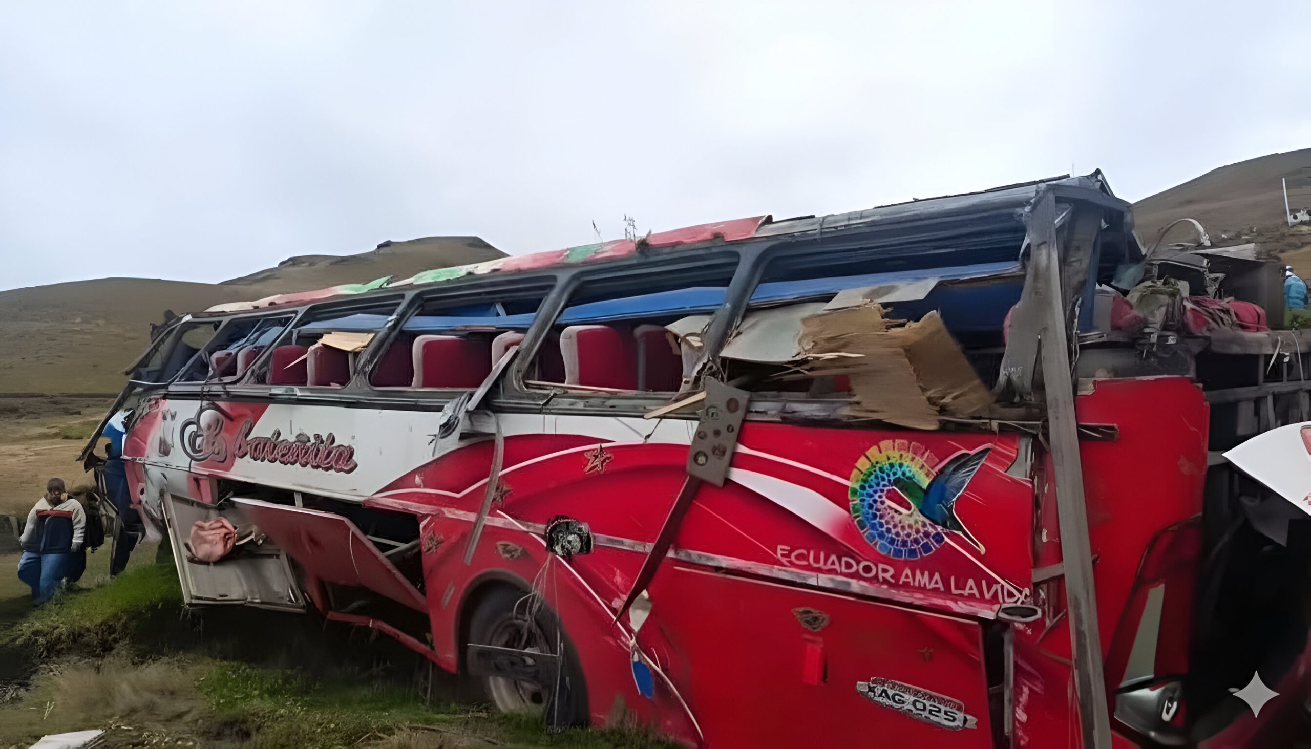 El hecho se dio alrededor de las 13:00 cuando un bus interprovincial de la cooperativa Ambateñita perdió el control del vehículo y se volcó, lo cual provocó que cayera a un abismo.