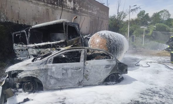 Un tráiler se volcó la mañana de hoy, 13 de febrero de 2025, en la avenida Simón Bolívar, en Quito.